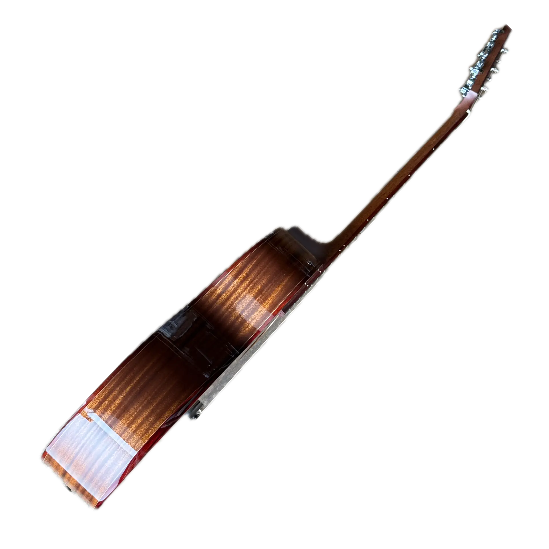 ボディにはエルボーコンター、カッタウエイコンターいずれもパドックという朱色の木材が施してあり、とても18万円弱で買ったとは思えない高級感があります(朱色に関しては少し派手な感じがあるのでサイドバックがマホガニの場合は色の組み合わせに好き嫌いが分かれそうだが)。